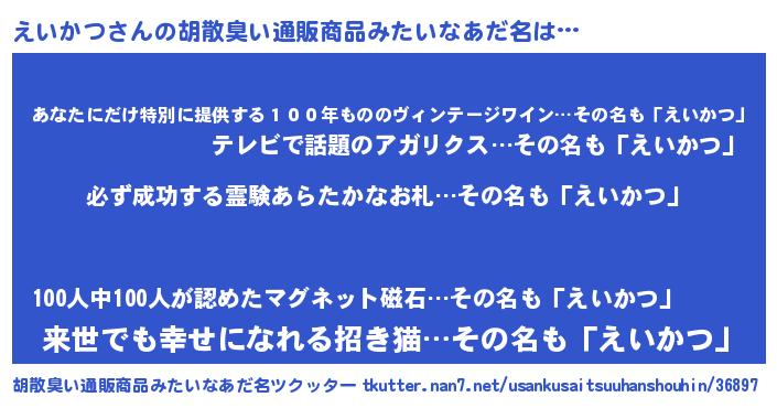 | 欧米人風あだ名 | 『マイケルえいかつ』『ダニエルえいかつ』 |