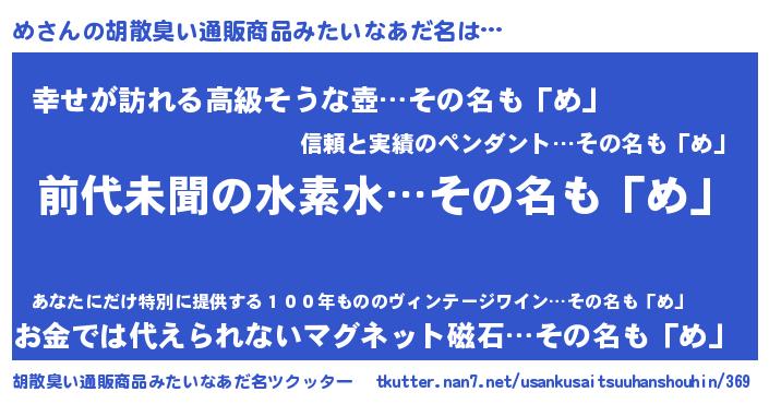 | ヘコむあだ名 | 『め(遠い目)』『つくし』『めっぺ』 |