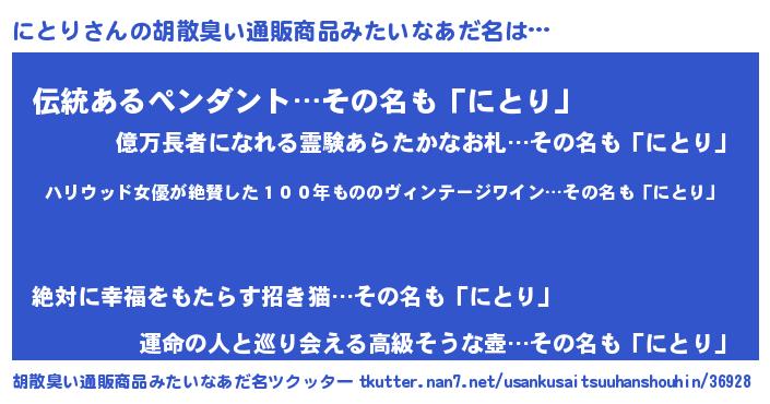 | ピコ太郎風あだ名 | 『ニト太郎』『ピニ八郎』『ニコ史郎』 |