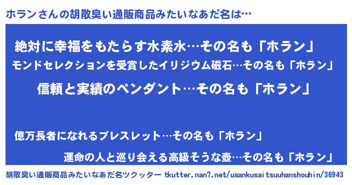 | ヘコむあだ名 | 『ホラっちょ』『ホラン(笑)』『牛乳』 |