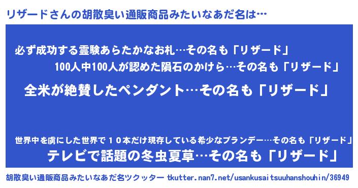 | 男性向けラノベタイトル風あだ名 | 『リザードに滅ぼされるだけの簡単なお仕事です』 |