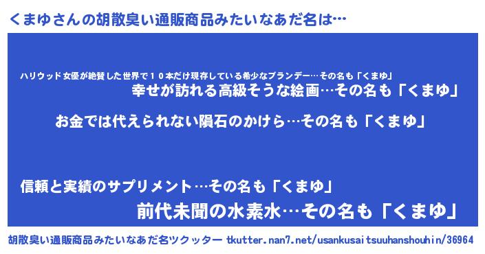 | ヒーロー風カッコイイあだ名 | 『慈愛の使者くまゆ』『仮面クマダー』 |