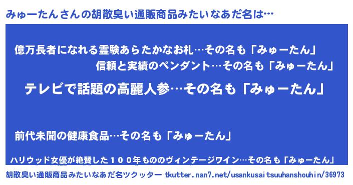 | 男性向けラノベタイトル風あだ名 | 『はたらくみゅーたんさま!』 |
