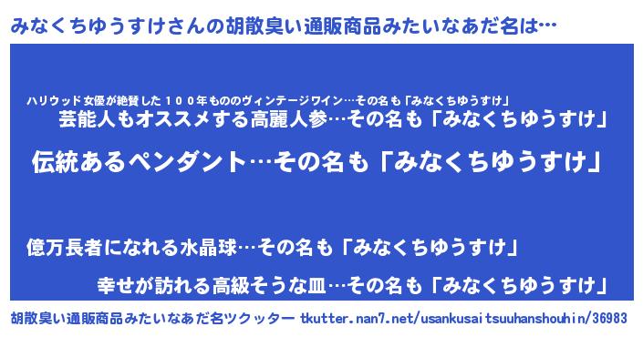 | 意味不明あだ名 | 『とにかく怪しいみなくちゆうすけ』 |