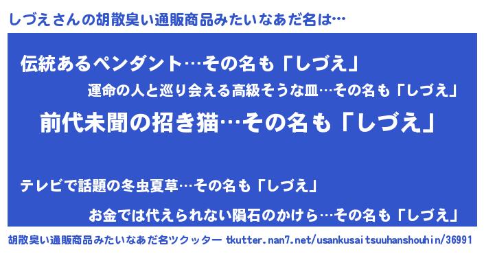 | ファンタジー風あだ名 | 『シヅディッシュ』『ファントムシヅス』 |