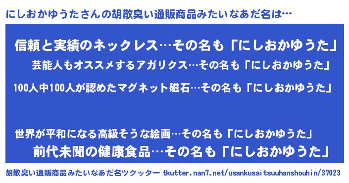 | ヘコむあだ名 | 『にしを』『にしおかゆうた(苦笑)』 |