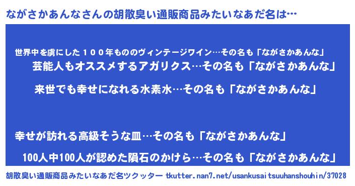 | 男性向けラノベタイトル風あだ名 | 『転生したらながさかあんなだった件』 |