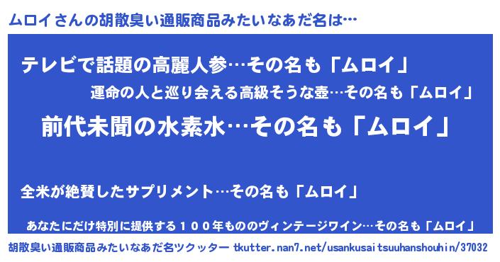 | ヘコむあだ名 | 『ムロイ(遠い目)』『なまこ酢』 |