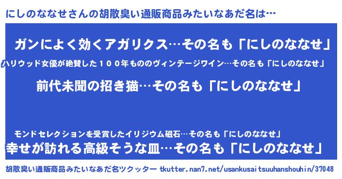 | 意味不明あだ名 | 『永久保存にしのななせ』 |