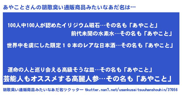 | ヘコむあだ名 | 『あやこと(笑)』『豆乳』『あやにー』 |