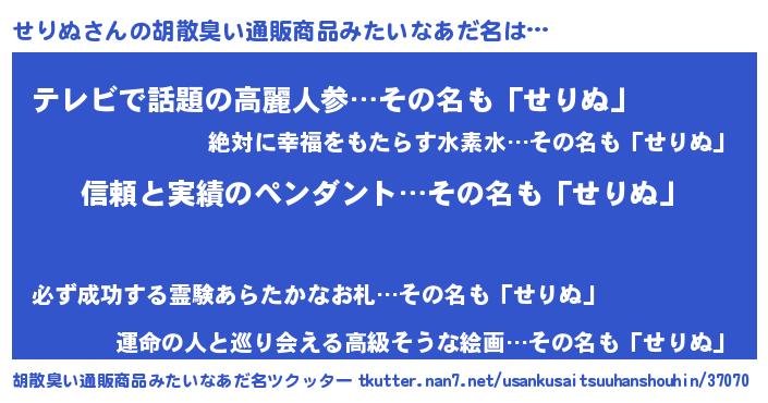 | ヘコむあだ名 | 『せりっぺ』『なまこ酢』 |