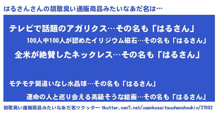 | 女子向けラノベタイトル風あだ名 | 『はるさん様がみてる』『闇のはるさん』 |