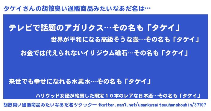 | 意味不明あだ名 | 『眠気覚ましガムタケイ味』『自称タケイ』 |