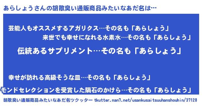| ヘコむあだ名 | 『あらを』『あらしょう(笑)』 |