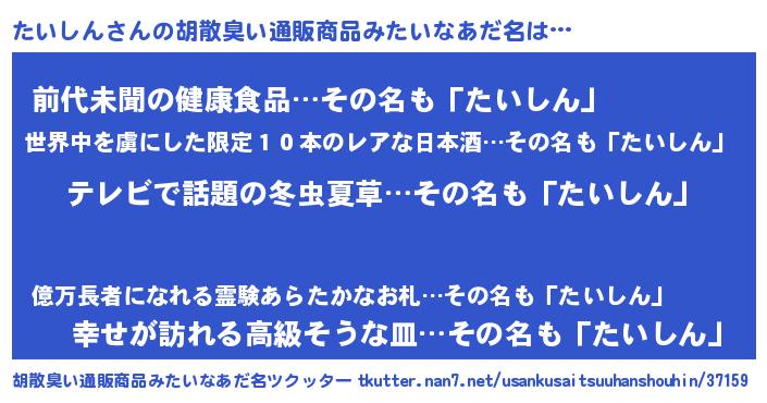 | 料理風あだ名 | 『ヘルシー!たいしんのピリ辛酒蒸し!』 |