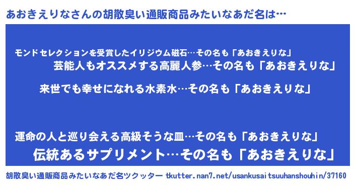 | 欧米人風あだ名 | 『ダルビッシュあおきえりな』 |