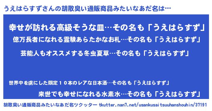 | 意味不明あだ名 | 『自称うえはらすず』 |