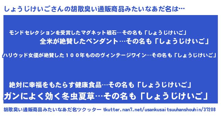 意味不明あだ名 | 『住所不定無職しょうじけいご(9歳)』 |