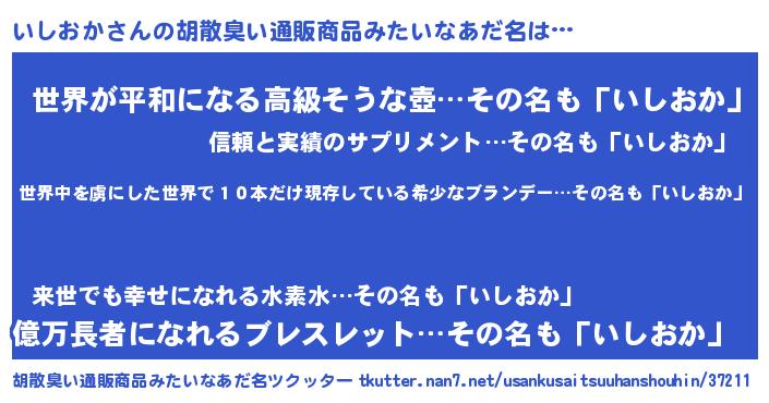 | 意味不明あだ名 | 『住所不定無職いしおか(93歳)』 |