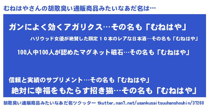| 肩書あだ名 | 『むねはや助教授』『むねはや総統』 |