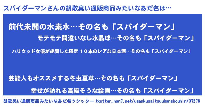 | 意味不明あだ名 | 『住所不定無職スパイダーマン(62歳)』 |