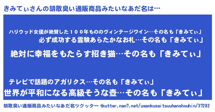 | 男性向けラノベタイトル風あだ名 | 『きみてぃという概念が存在しない退屈な世界 』 |