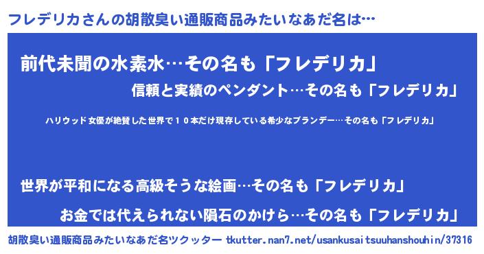 | ヘコむあだ名 | 『フレデリカ(震え声)』『フレを』 |