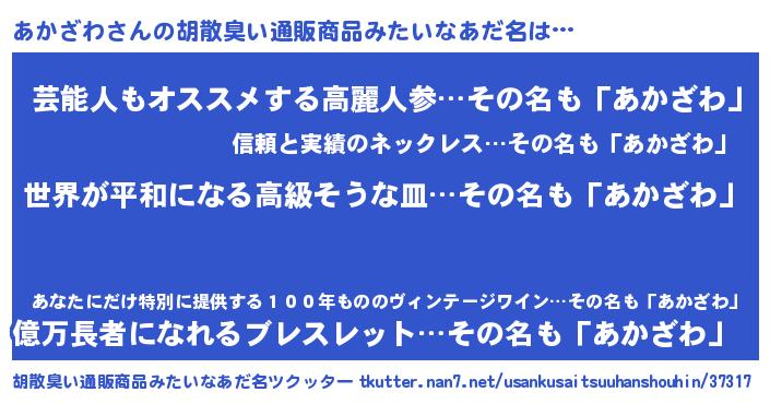 | ヘコむあだ名 | 『なまこ酢』『あかにー』『あかを』 |