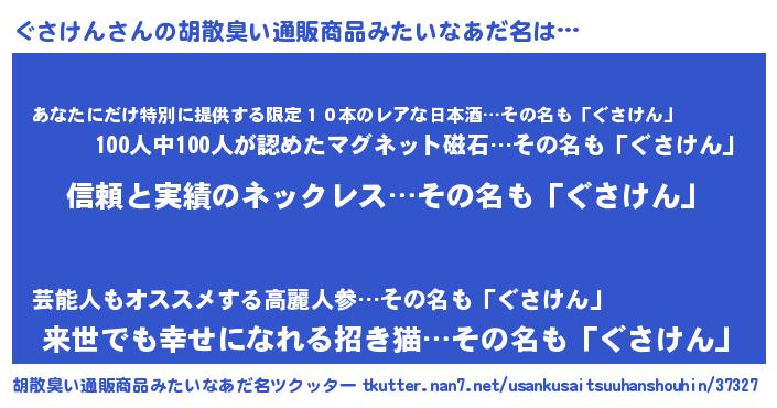 | ヘコむあだ名 | 『ぐさ太郎』『ぐさけん(笑)』『豆乳』 |
