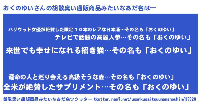 | 男性向けラノベタイトル風あだ名 | 『転生したらおくのゆいだった件』 |