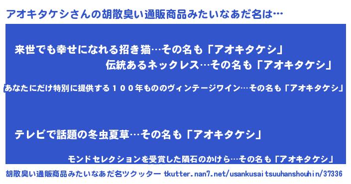 | 意味不明あだ名 | 『住所不定無職アオキタケシ(4歳)』 |