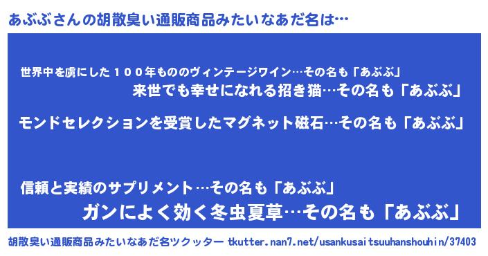 | ヘコむあだ名 | 『あぶぶ(笑)』『あぶお』『あぶもー』 |