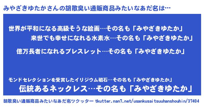 | 恥ずかしいあだ名 | 『プリティーみやざきゆたか』『みやちん』 |