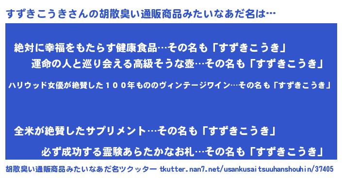 | ヘコむあだ名 | 『すずきこうき(小並感)』『すずもー』 |