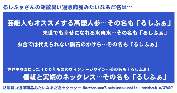 | ヘコむあだ名 | 『るしぷりん』『るしふぁ(苦笑)』 |