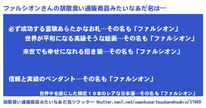 | ヘコむあだ名 | 『ファルシオン(笑)』『ファもー』 |