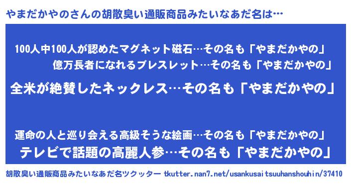 | 意味不明あだ名 | 『とにかく怪しいやまだかやの』 |