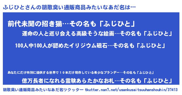 | ヒーロー風カッコイイあだ名 | 『正義の使者ふじひと』『ネオフジヒト』 |
