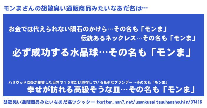 | 男性向けラノベタイトル風あだ名 | 『モンまの憂鬱』『モンマスレイヤー』 |