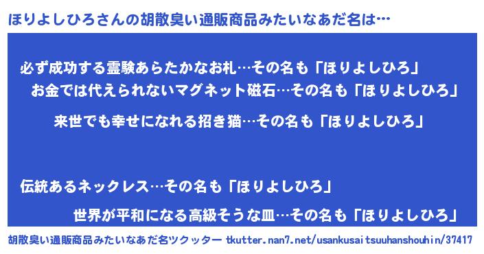 | 恥ずかしいあだ名 | 『ほりちん』『プリティーほりよしひろ』 |