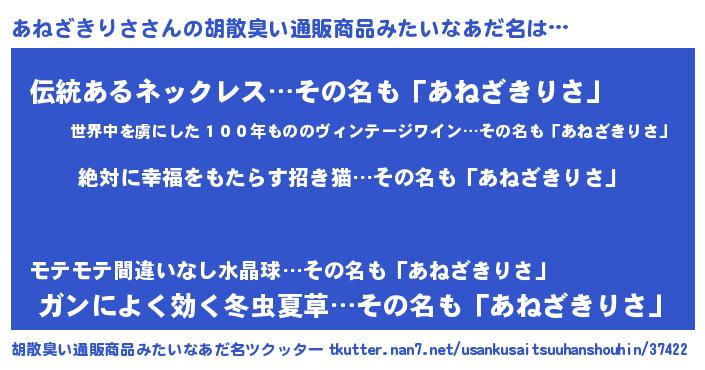 | ヘコむあだ名 | 『あねざきりさ(小並感)』『あね太郎』 |