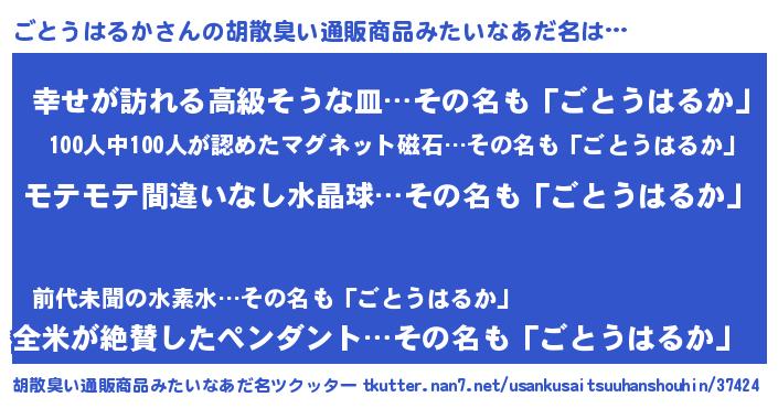 | 恥ずかしいあだ名 | 『プリティーごとうはるか』『ごとっちょ』 |