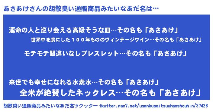 | ヘコむあだ名 | 『あさにー』『なまこ酢』『あさ太郎』 |