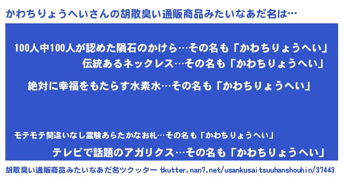 | ヘコむあだ名 | 『かわちりょうへい(震え声)』『かわお』 |