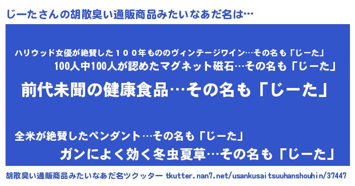 | 意味不明あだ名 | 『永久保存じーた』『自称じーた』 |