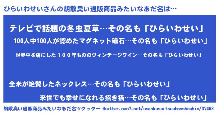 | ヘコむあだ名 | 『ひらいわせい(小並感)』『ひらぷりん』 |