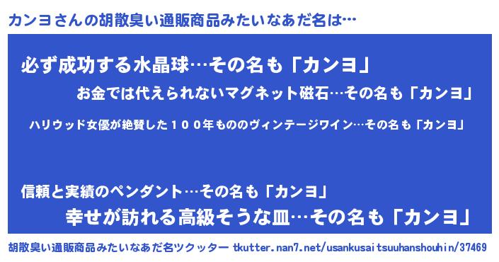 | 意味不明あだ名 | 『住所不定無職カンヨ(1歳)』 |