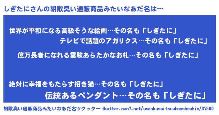 | 意味不明あだ名 | 『ペロリンしぎたに』『自称しぎたに』 |
