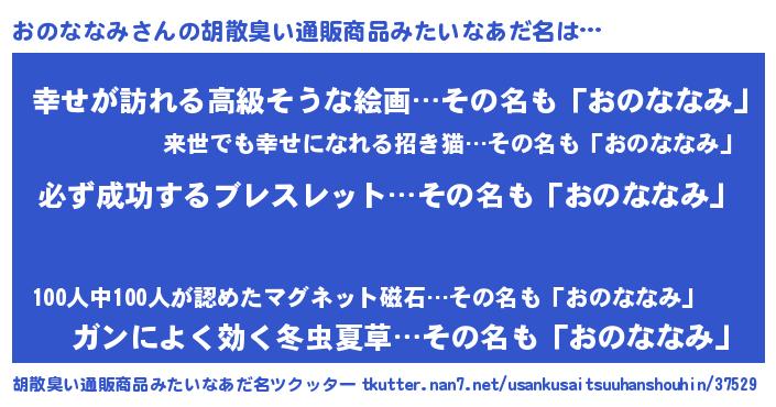 | 意味不明あだ名 | 『ペロリンおのななみ』『自称おのななみ』 |