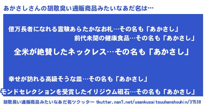 | 恥ずかしいあだ名 | 『アカリンリン』『プリティーあかさし』 |